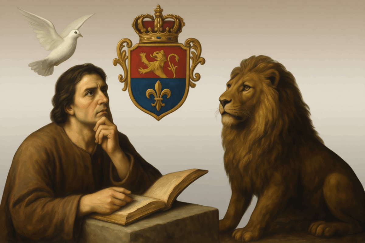 Quando vediamo un blasone siamo dunque di fronte a un sistema complesso di simboli, combinato secondo forme sviluppatesi a partire da un linguaggio strutturato che permetteva di raccontare lo stemma tramite una descrizione verbalizzata. La blasonatura divenne così un codice condiviso per catalogare e trasmettere la storia, l’identità e i diritti di intere famiglie nobiliari. Questo sistema si sviluppò nella Francia feudale per diffondersi in tutta Europa; gli araldi, incaricati del riconoscimento dei cavalieri, giocarono un ruolo chiave nel consolidamento di questa tradizione ermeneutica. In pratica, il blasone è un piccolo dispositivo di architettura mnemonica pensato per l’organizzazione e il richiamo di concetti complessi: agisce come un’immagine agente nell’arte della memoria, condensando molte informazioni in una sola figurazione simbolica e allegorica.
