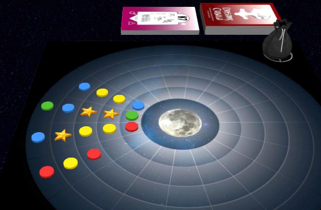 Le due cifre che compongono il numero della carta vanno considerate come il lancio di due dadi. Si può muovere una pedina per ognuno dei due numeri, o una pedina per la somma di entrambe i numeri, ad esempio n.68= una pedina di 6 e una di 8, oppure una sola pedina di 6+8. Le pedine entrano in gioco dalla casa n.1, si possono muovere solo in senso orario o antiorario sullo stesso anello saltando le pedine proprie o avversarie e le case compromesse che incontrano, se vogliono passare da un anello all’altro devono saltare altre pedine o altre case compromesse, dopo averle affiancate. Il salto conta sempre come un solo passo, indipendentemente dal numero di case che si saltano. Con queste regole si può muovere dall’esterno verso l’interno e dall’interno verso l’esterno, cambiando anche più volte direzione ma senza toccare mai la stessa casa con la stessa pedina nello stesso turno.